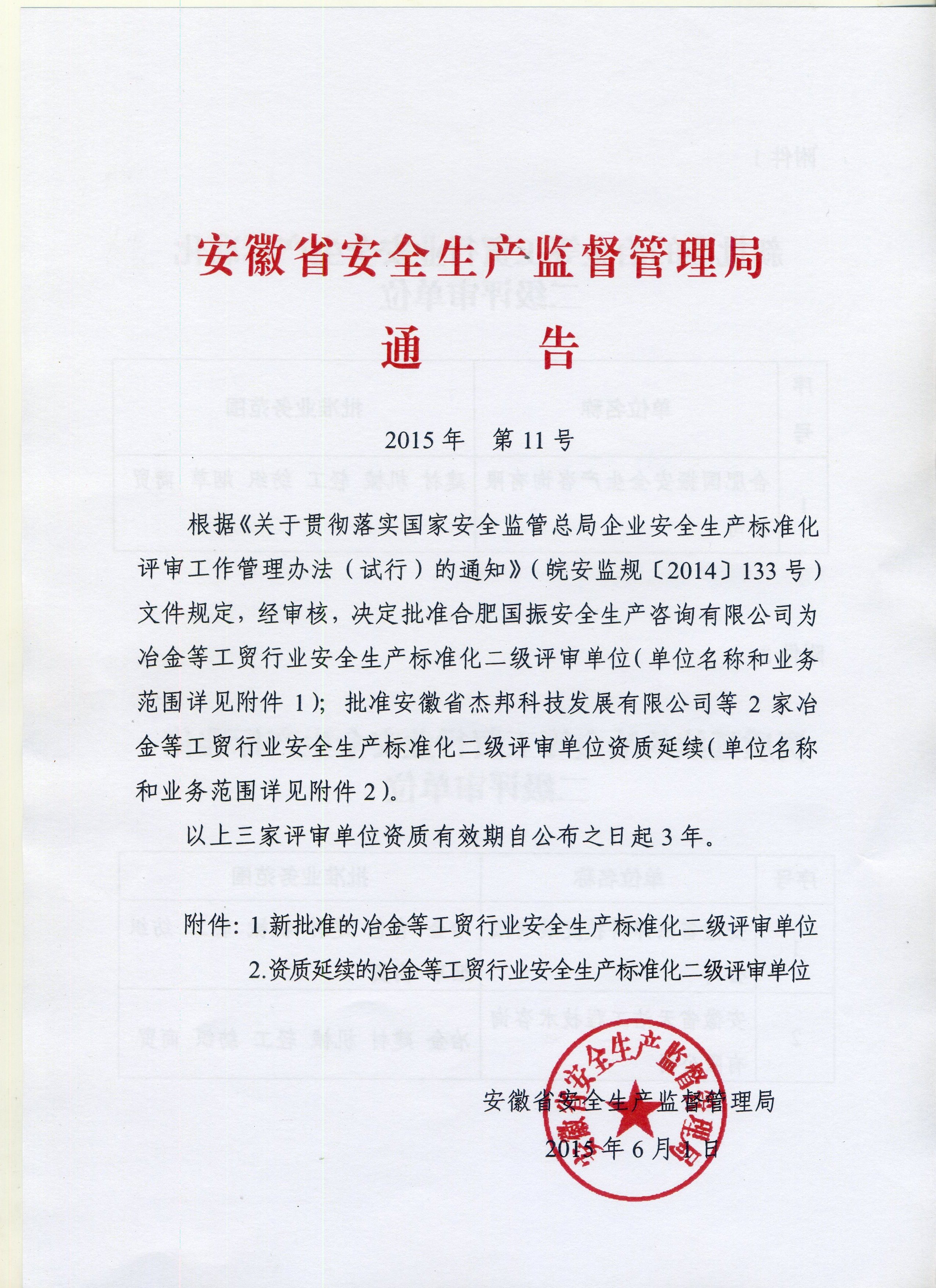 06-02安徽省安全生產監督管理局通告2015年第11...